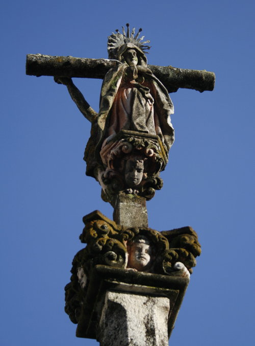 Este é un cruceiro que podemos atopar en Rianxiño, bastante modermo visto o detalle das figuras, e que destaca sobre todo porque a Virxe estaba pintada, algo pouco habitual nos cruceiros.