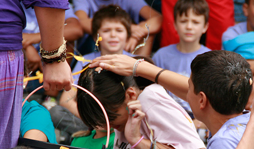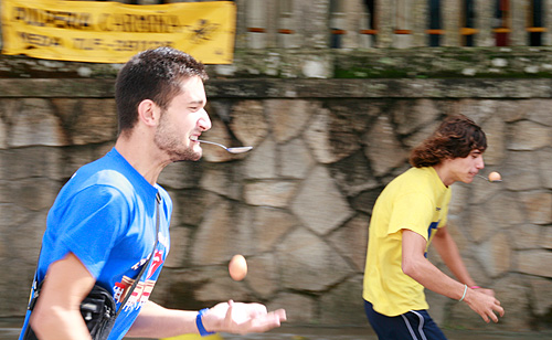 A xincana remata cun relevo no que os participantes teñen que levar un ovo enriba dunha culler que sosteñen coa boca. As présas ás veces son moi malas…
