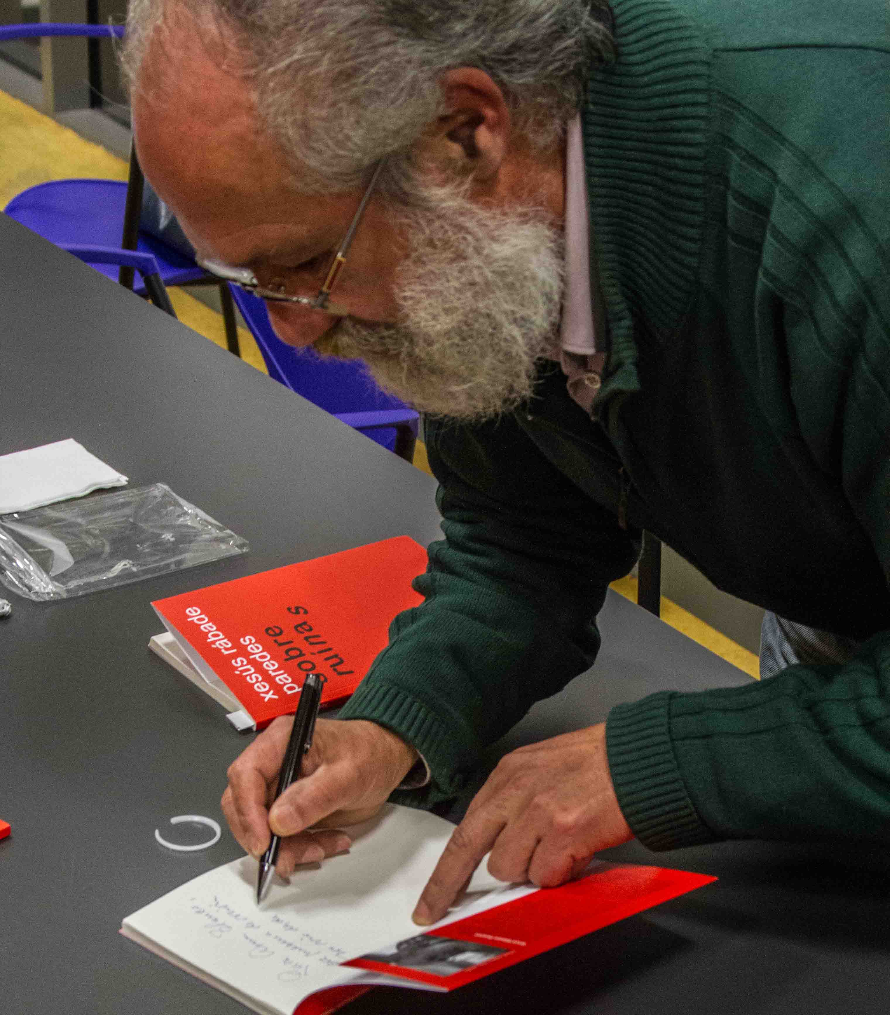 Finalmente, ou autor, despois de agradecer as intervencións precedentes, foi recitando diversos poemas ao tempo que engadía algunha apreciación sobre a obra en xeral ou o poema en particular. Así é como soubemos, a través da voz característica e poderosa de Rábade, que máis de cen poemas foron descartados da versión inicial; ou que estaba no seu ánimo amosar a denuncia e desesperación que lle producían os descastados e os desclasados; ou a vindicación de que o intelectual se comprometa de forma irrenunciable coa remisión da inxustiza que o rodea, pois, se non é así, carece de sentido o seu labor, salvo para venderse ao presebe do poder e do capital –fenómeno, diremos nós, ben coñecido na cultura galega das últimas décadas e mesmo do presente–. A este respecto, a primeira parte do libro, titulada Poética(s) é unha auténtica e admirable declaración do seu compromiso persoal: Só serás o que soñas, poeta. O teu oficio / ha de impedir que a escasa luz se extinga / e abesullar na noite camiños de luzada.