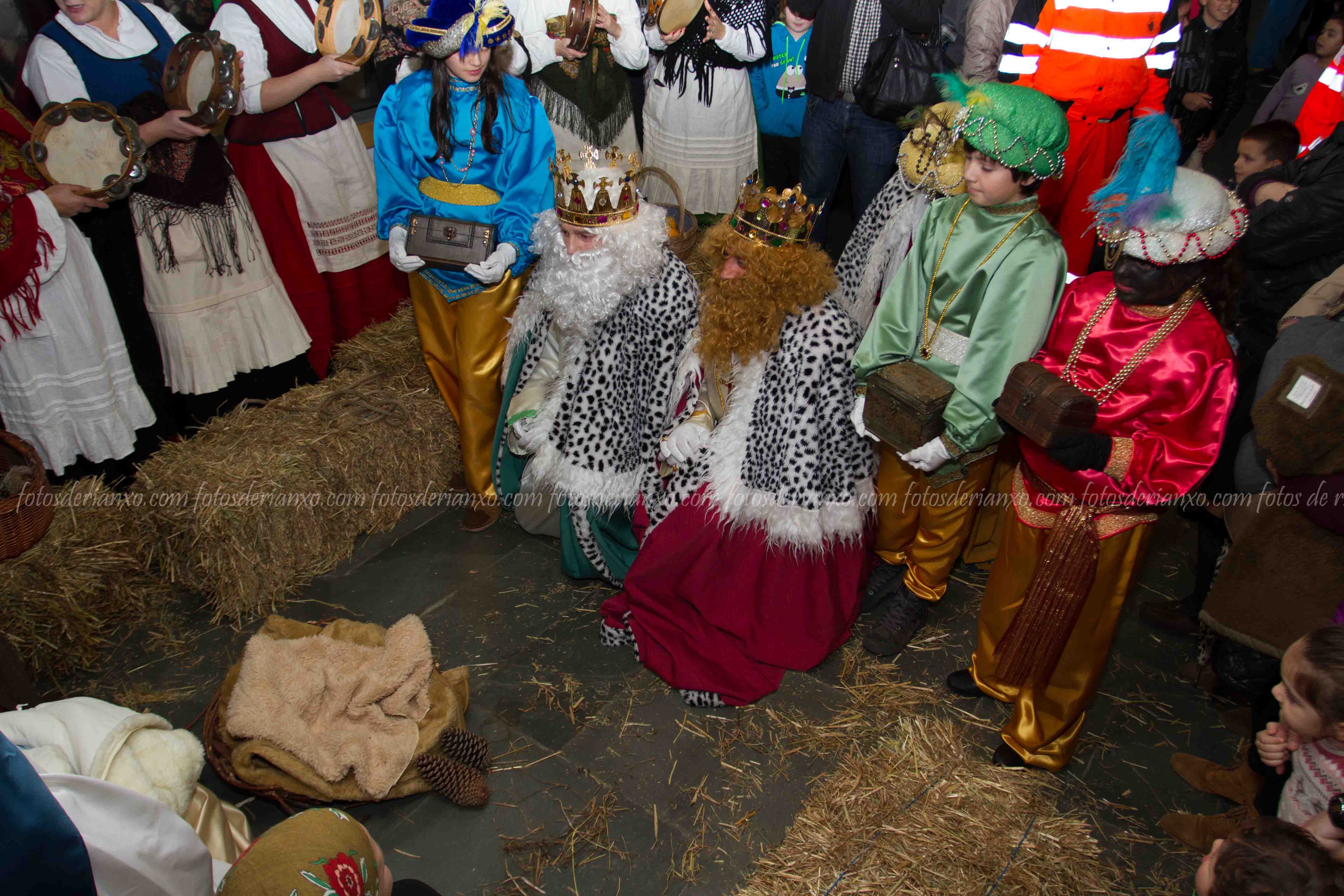 Os Reis, fixeron a tradicional ofrenda ao neno Xesús, á Virxe María e a San Xosé no belén vivente: