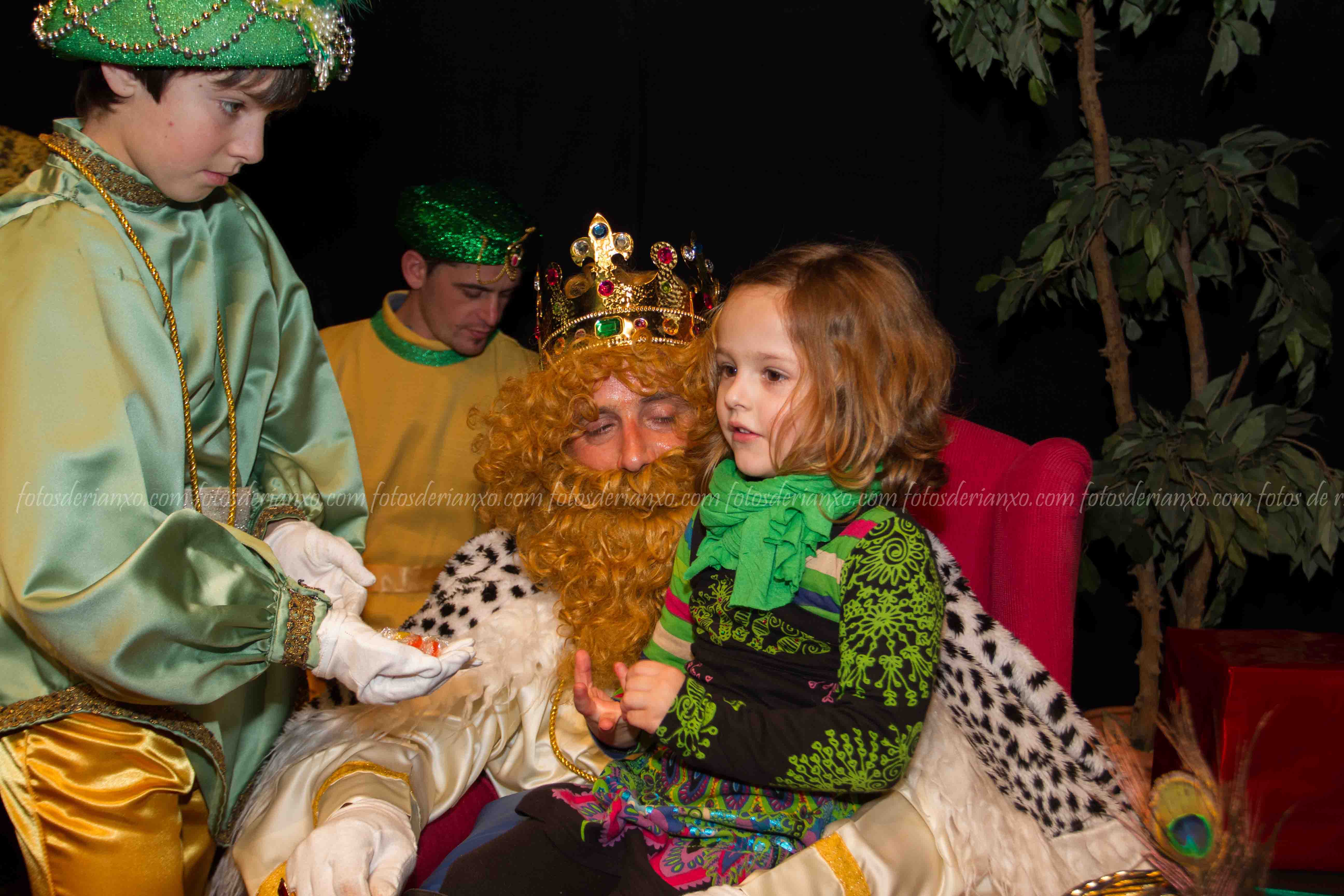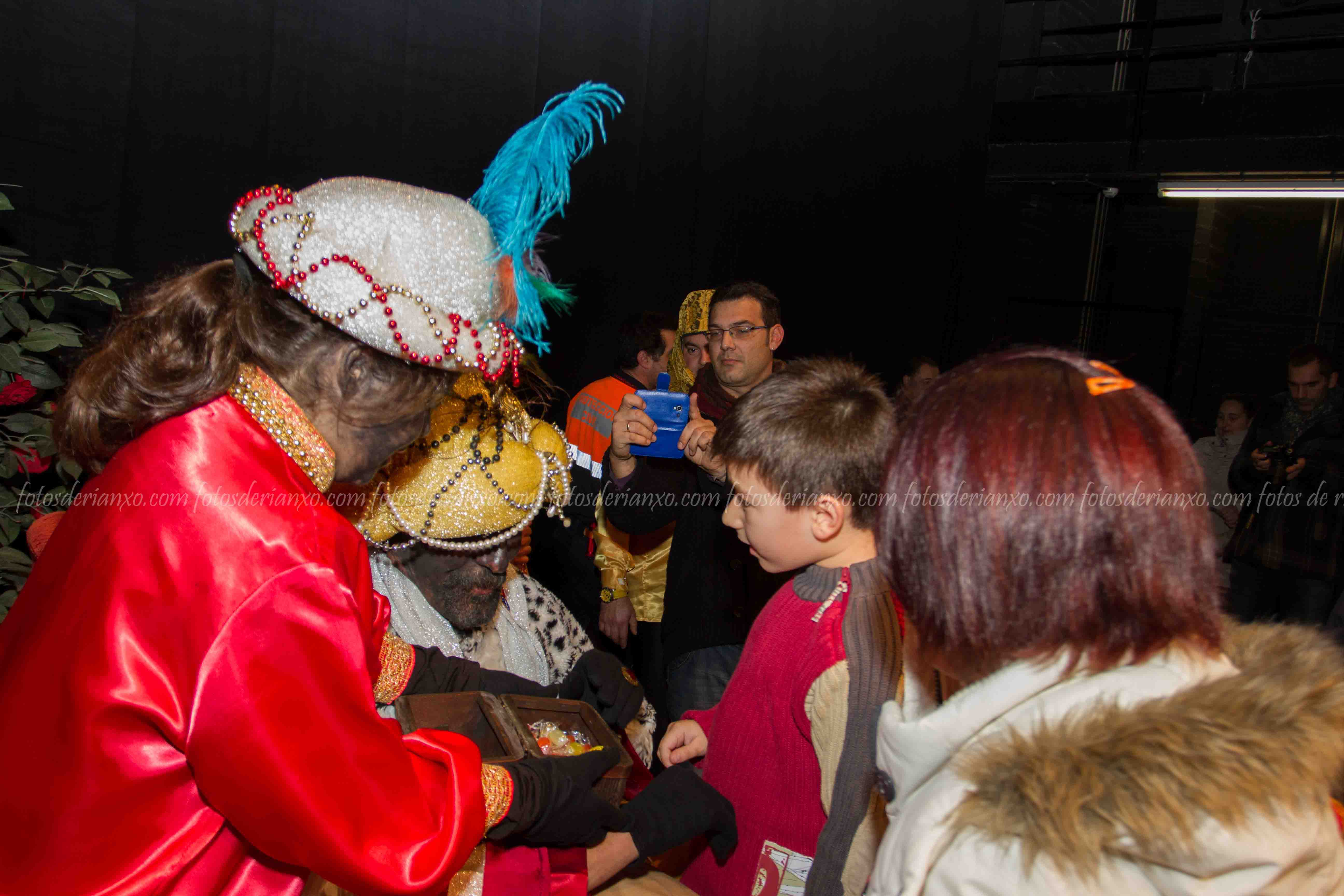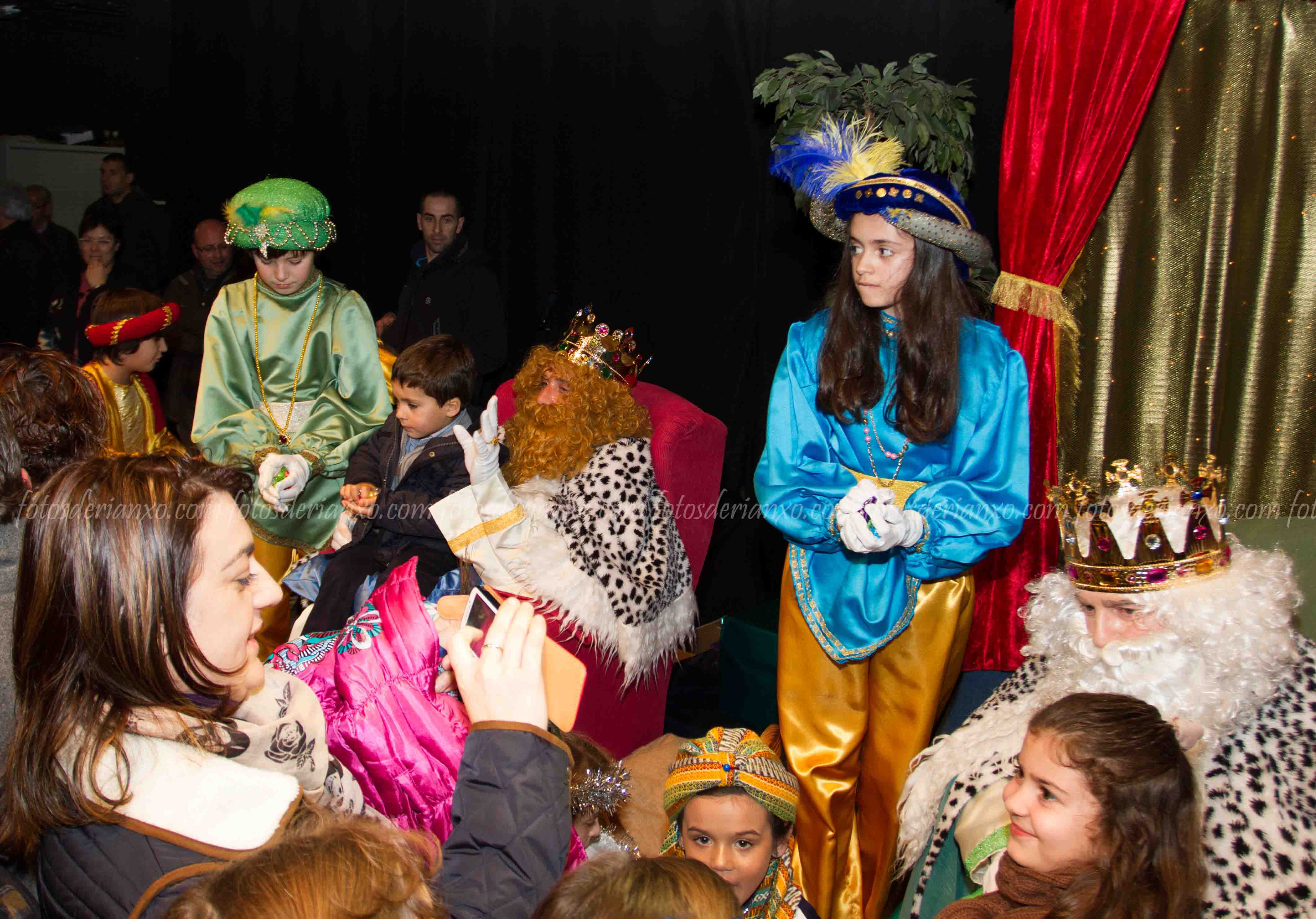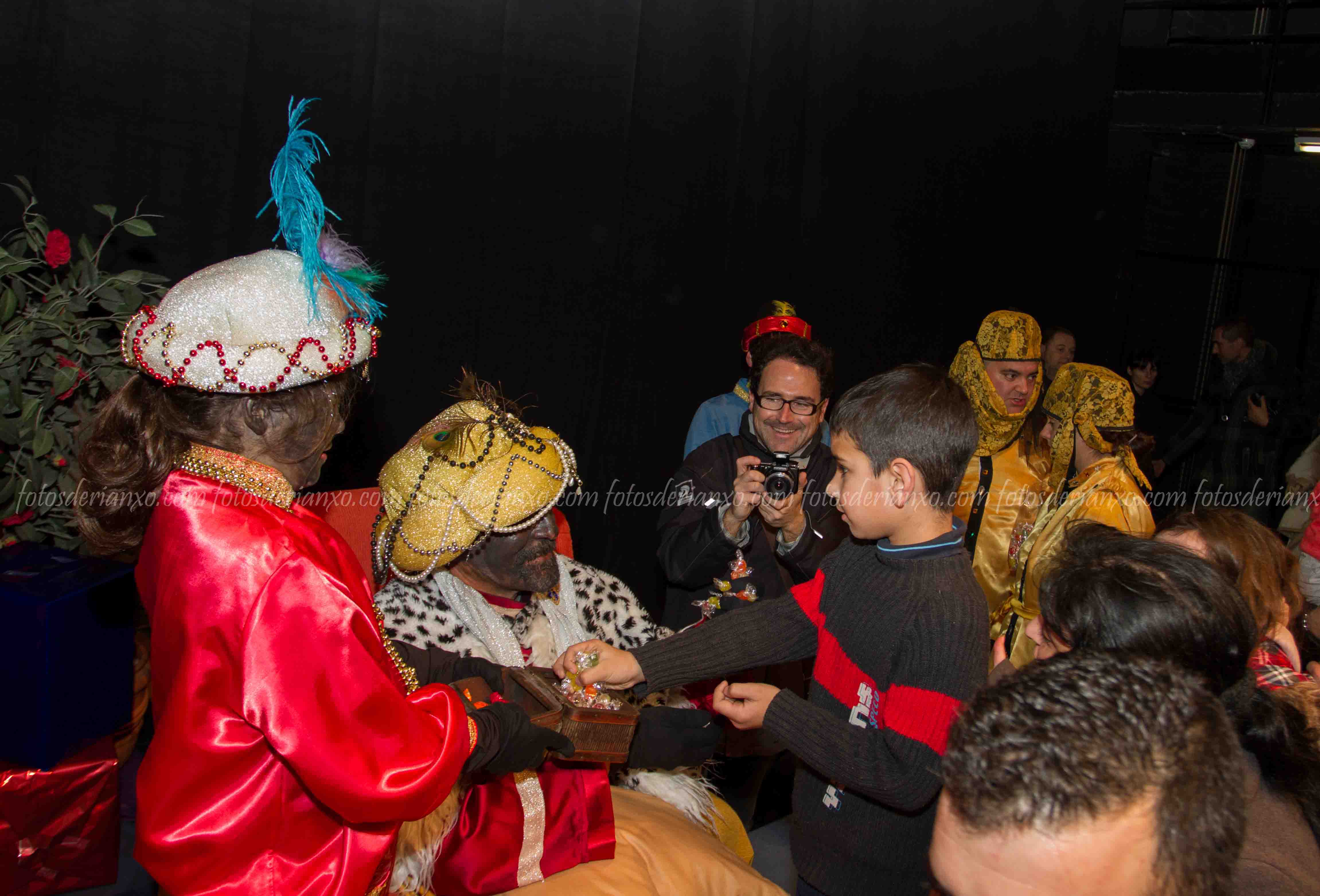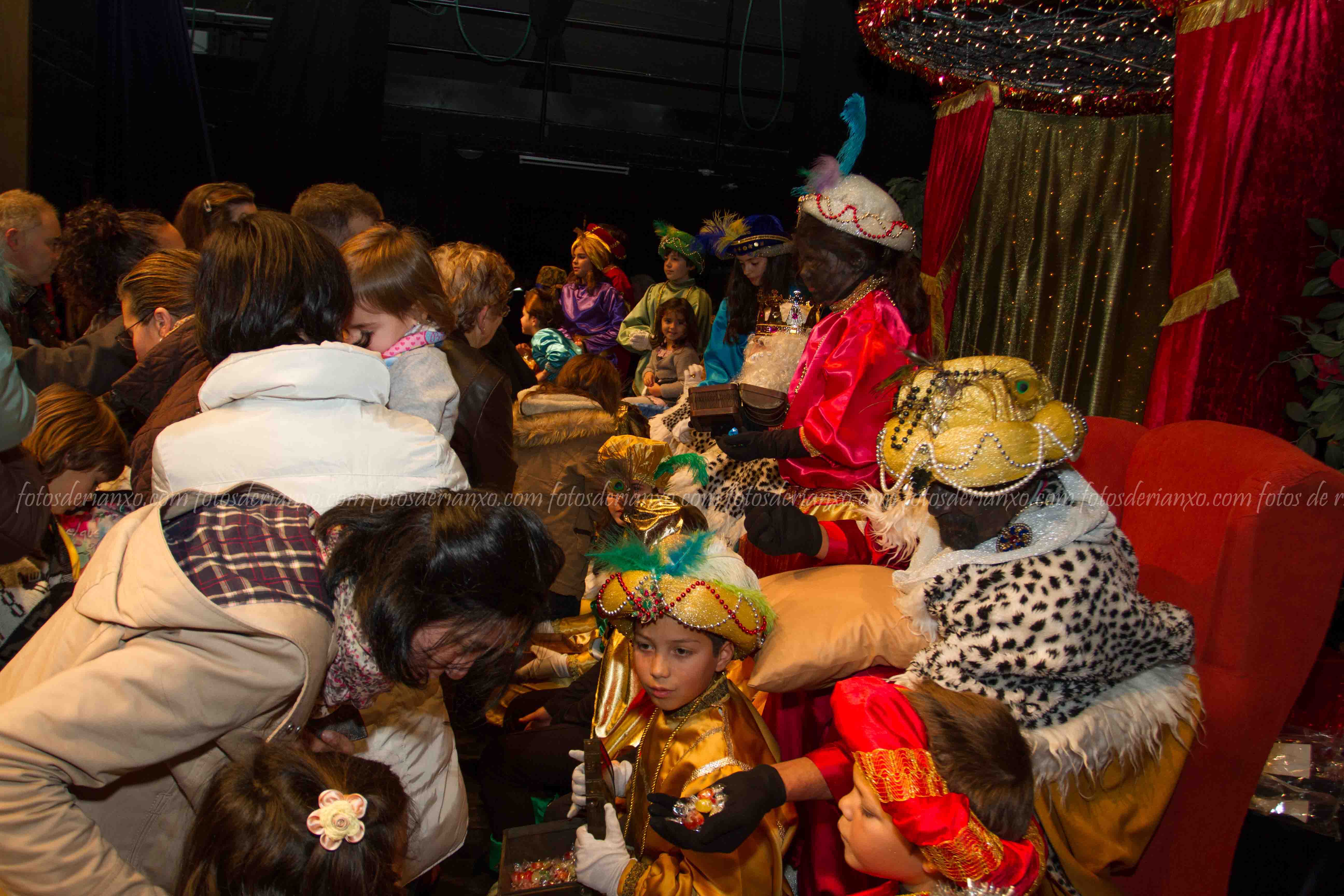 Logo da ofrenda, entraron no Auditorio e foron para o escenario, onde se acomodaron nos seus tronos e agardaron ós centos de cativ@s que pasaron por alí a pedir os seus agasallos ó seu rei favorito (ou ós tres directamente) e a coller os caramelos que lles ofrecían.