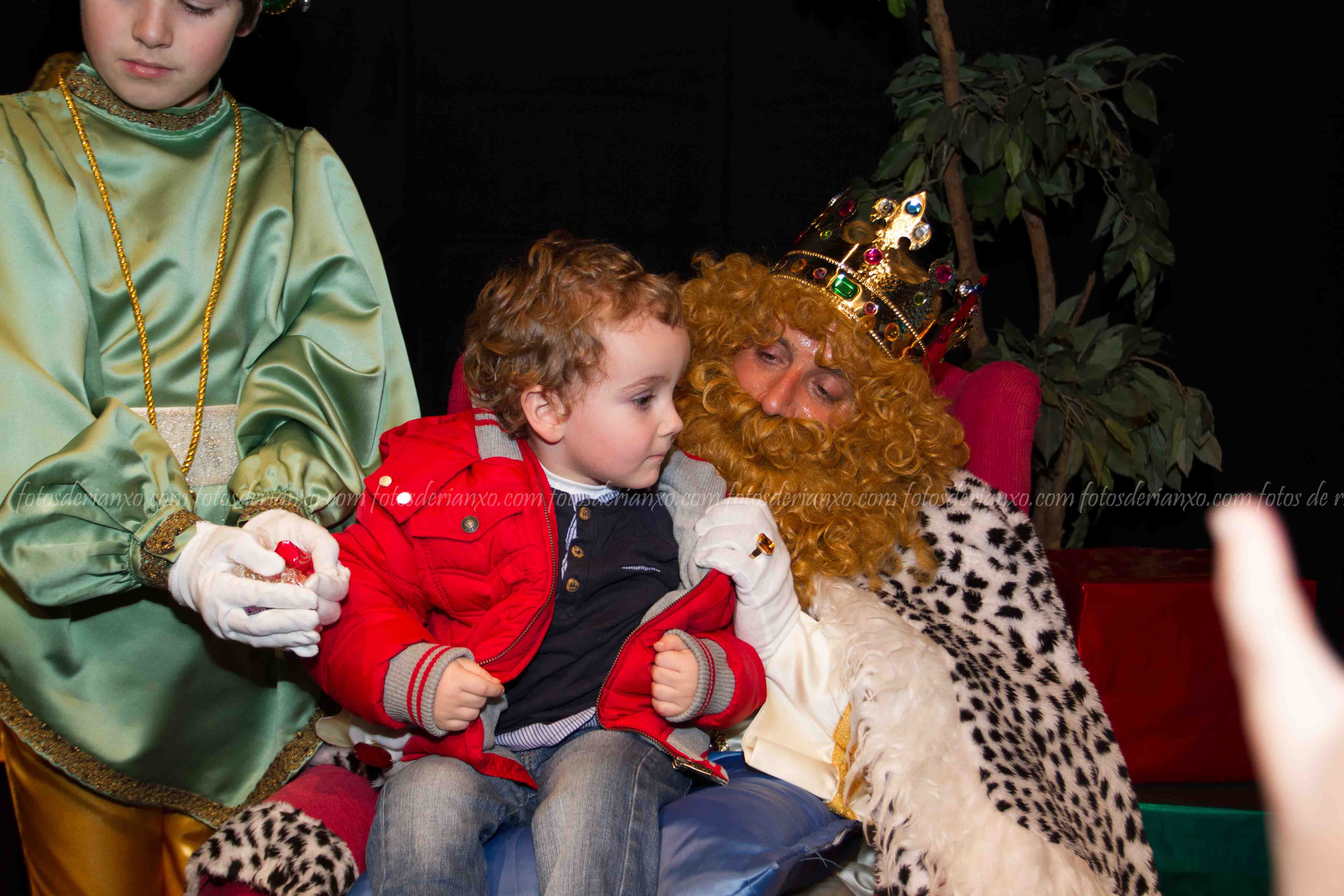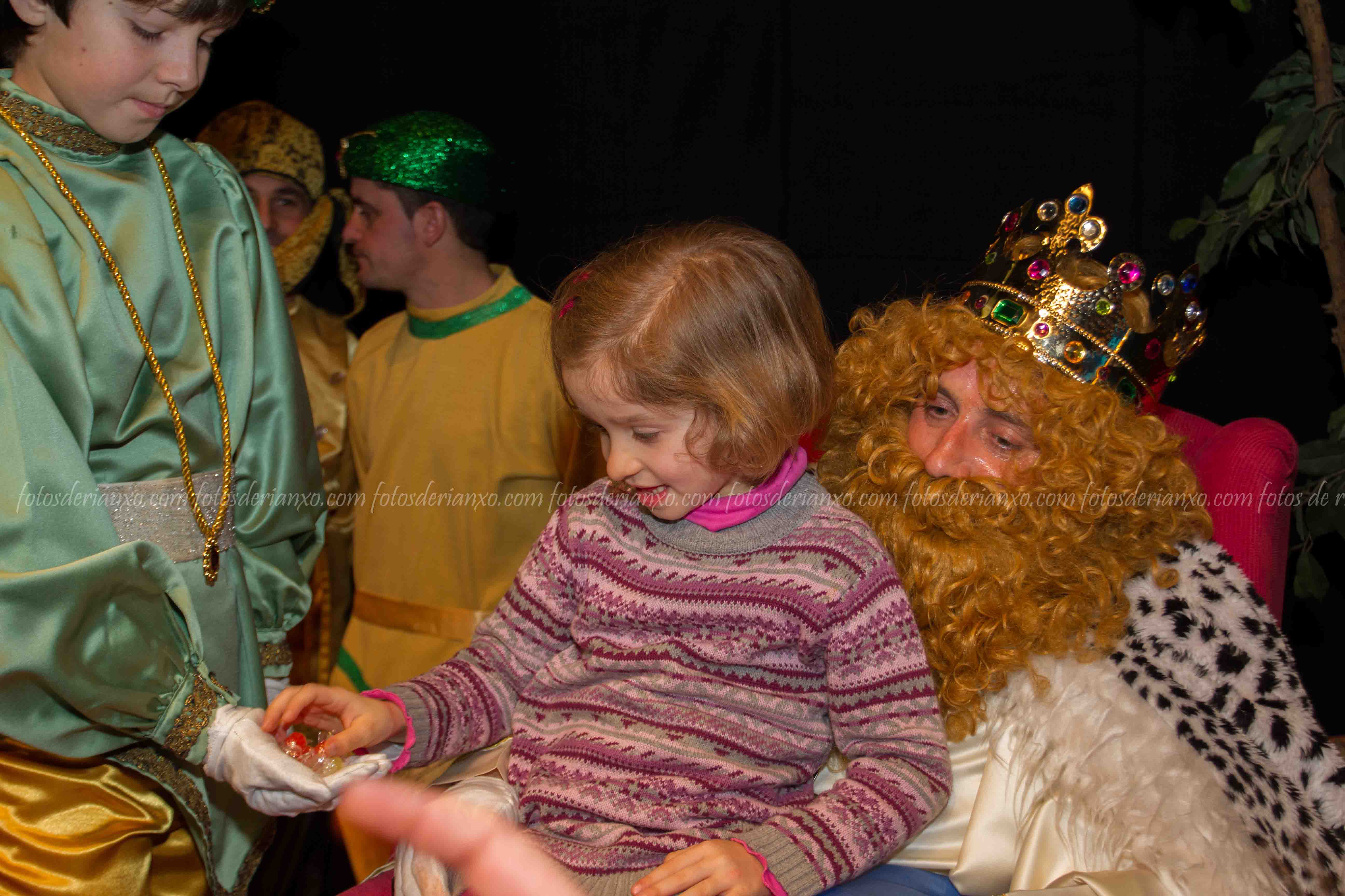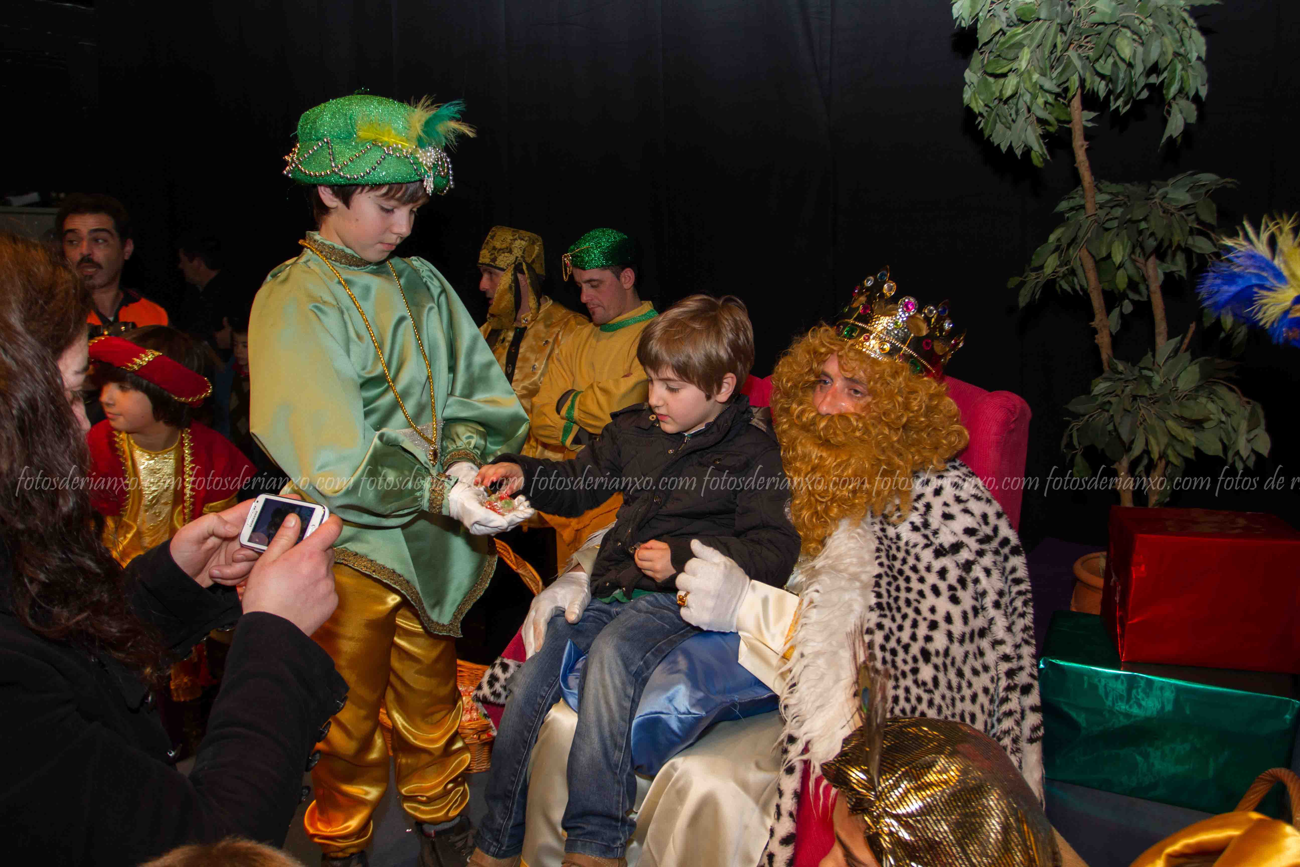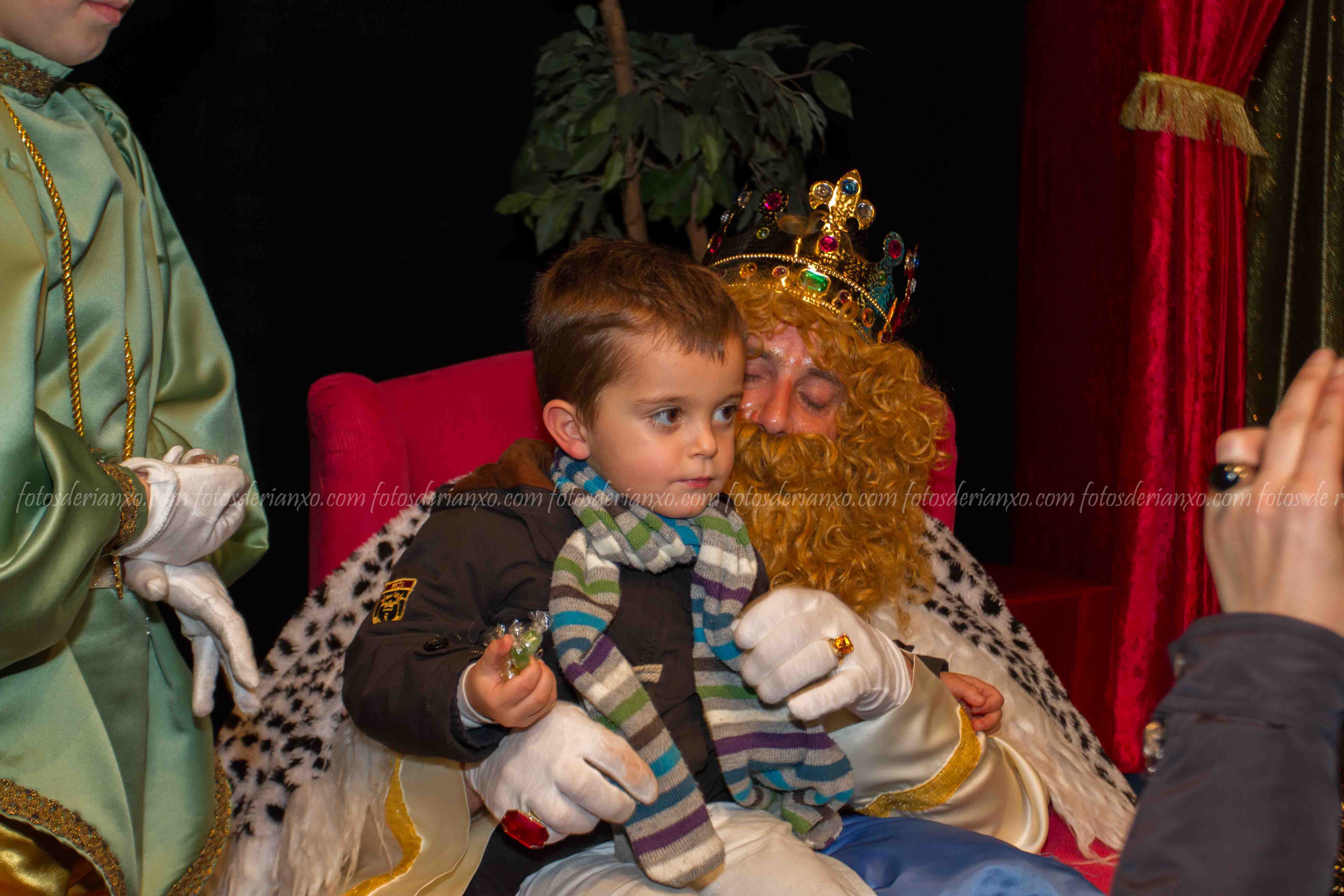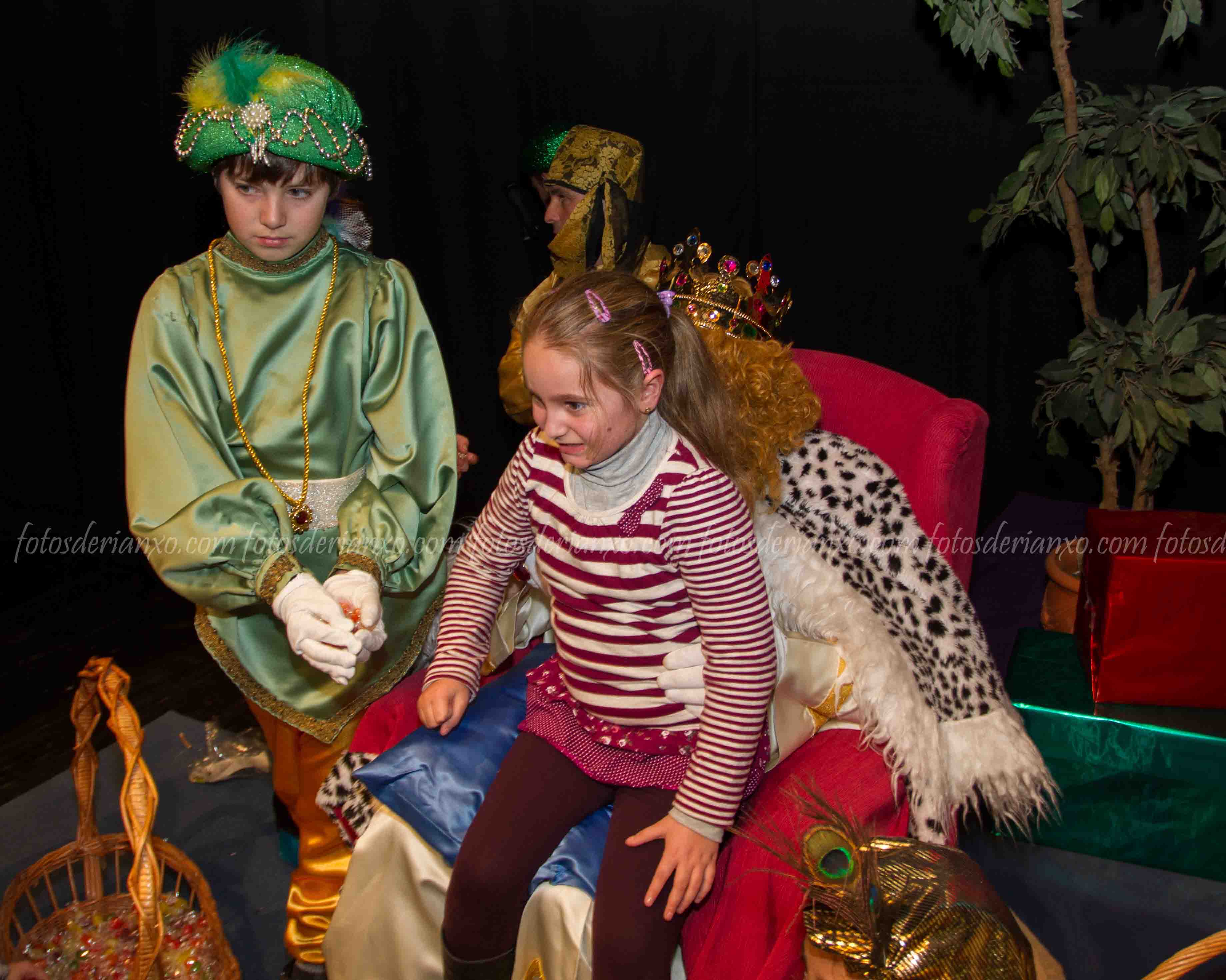 Logo da ofrenda, entraron no Auditorio e foron para o escenario, onde se acomodaron nos seus tronos e agardaron ós centos de cativ@s que pasaron por alí a pedir os seus agasallos ó seu rei favorito (ou ós tres directamente) e a coller os caramelos que lles ofrecían.
