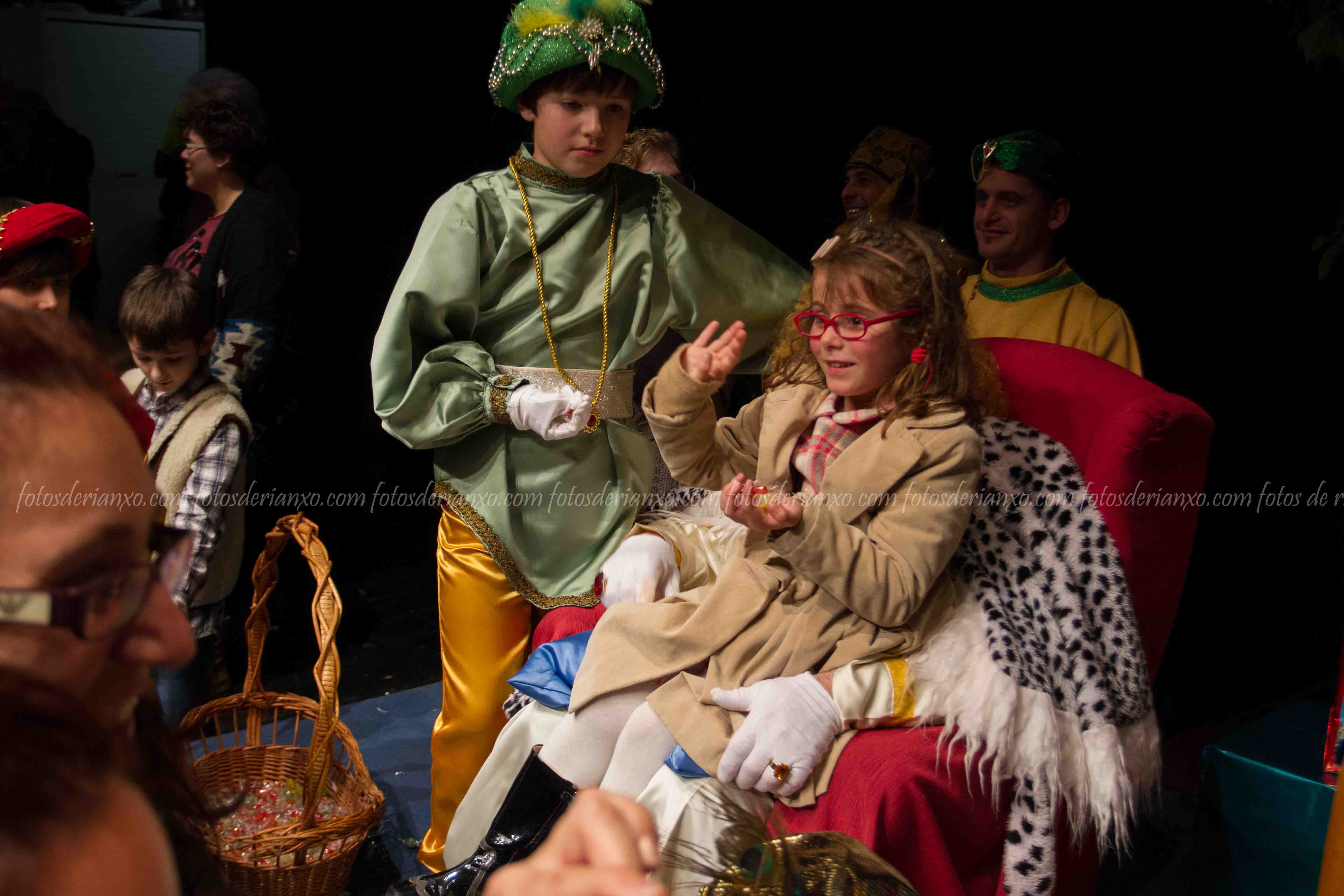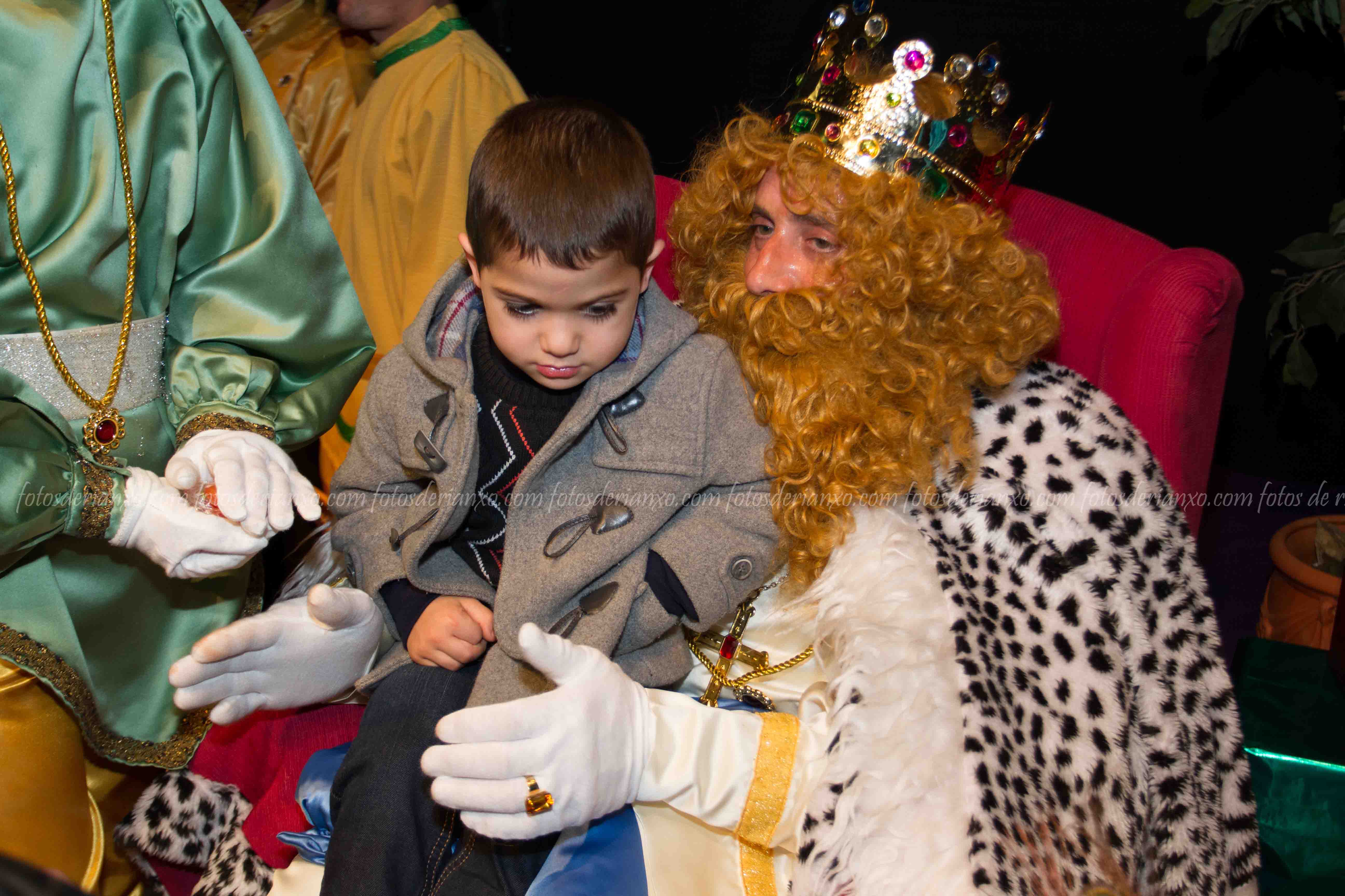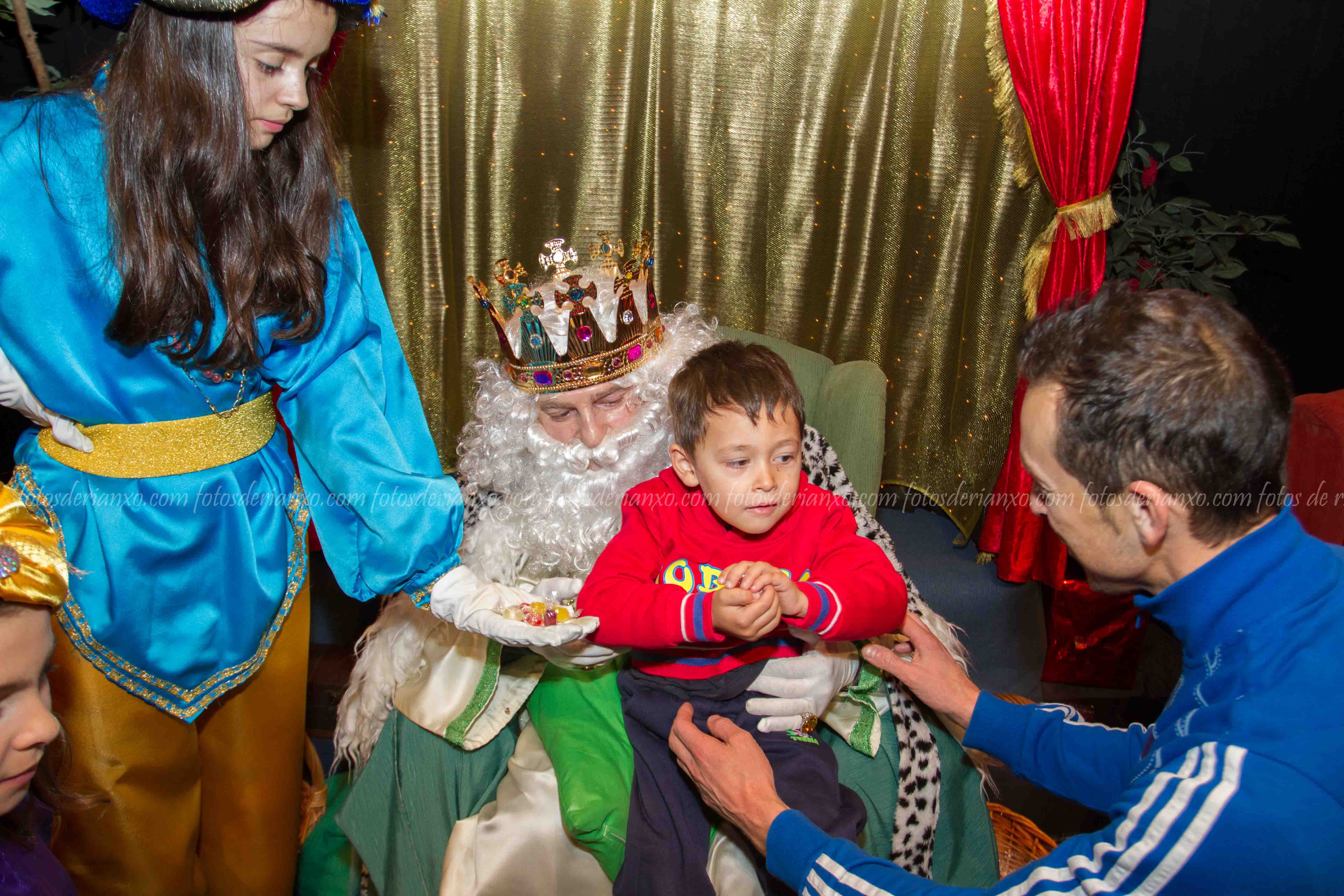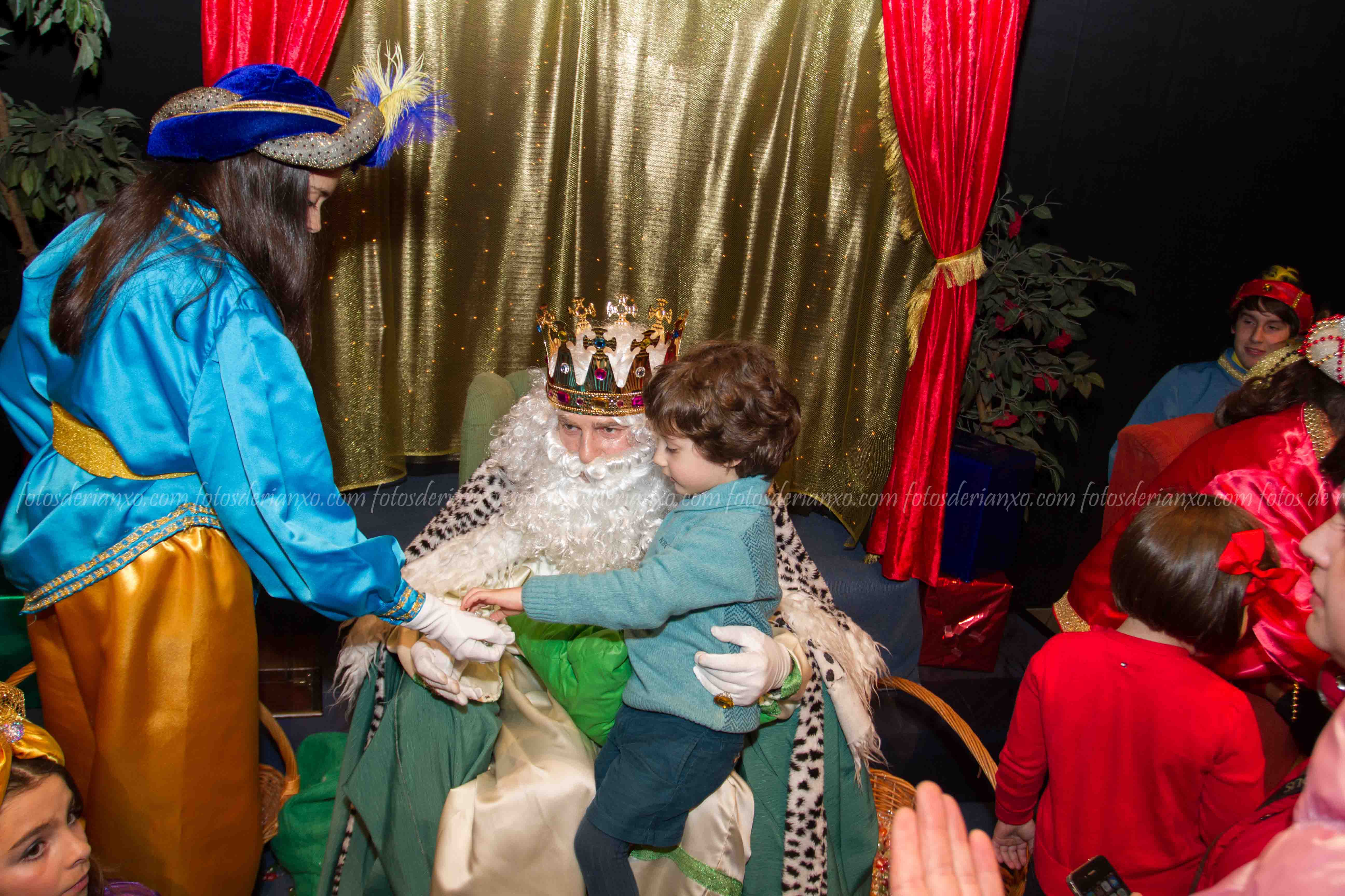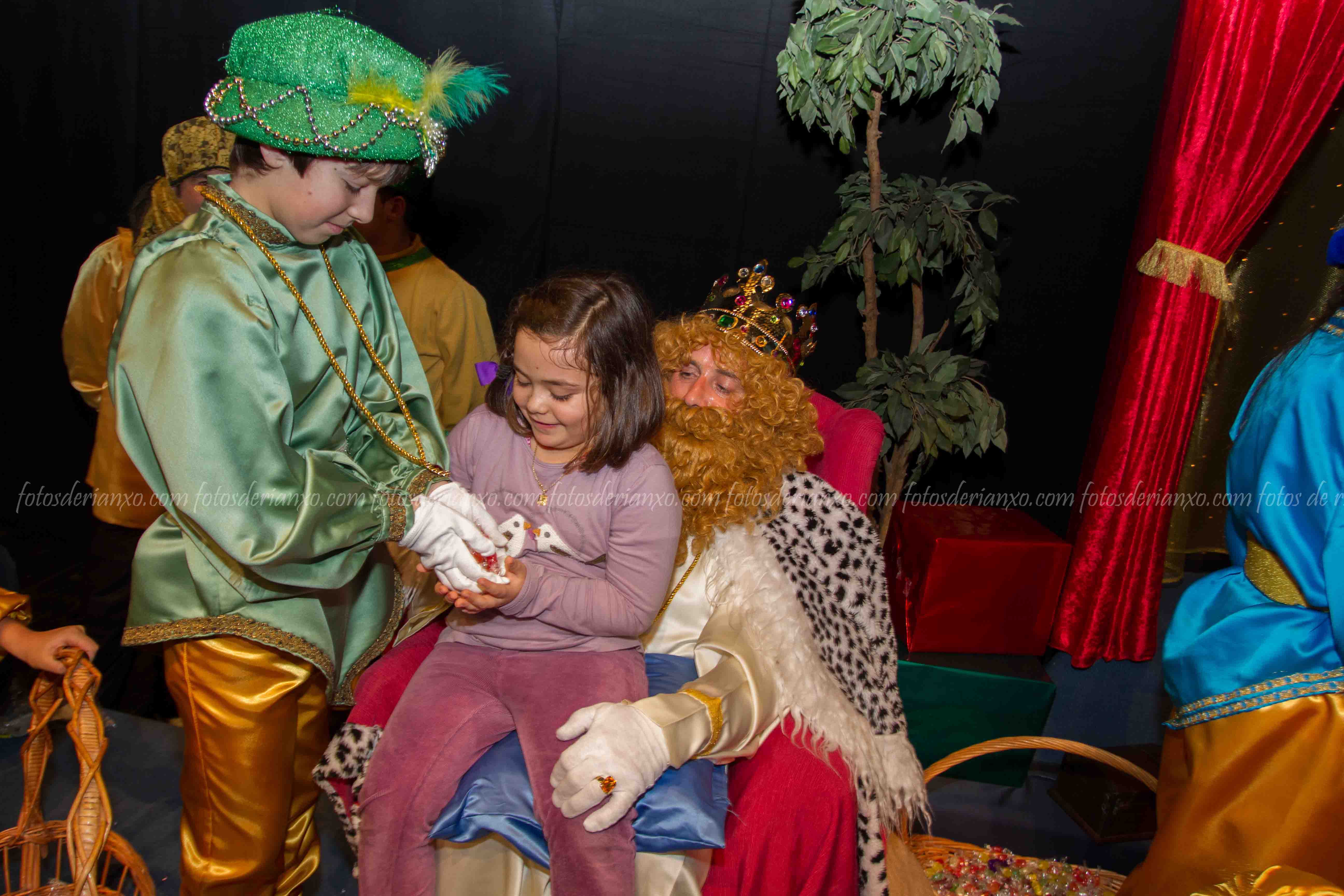 Logo da ofrenda, entraron no Auditorio e foron para o escenario, onde se acomodaron nos seus tronos e agardaron ós centos de cativ@s que pasaron por alí a pedir os seus agasallos ó seu rei favorito (ou ós tres directamente) e a coller os caramelos que lles ofrecían.