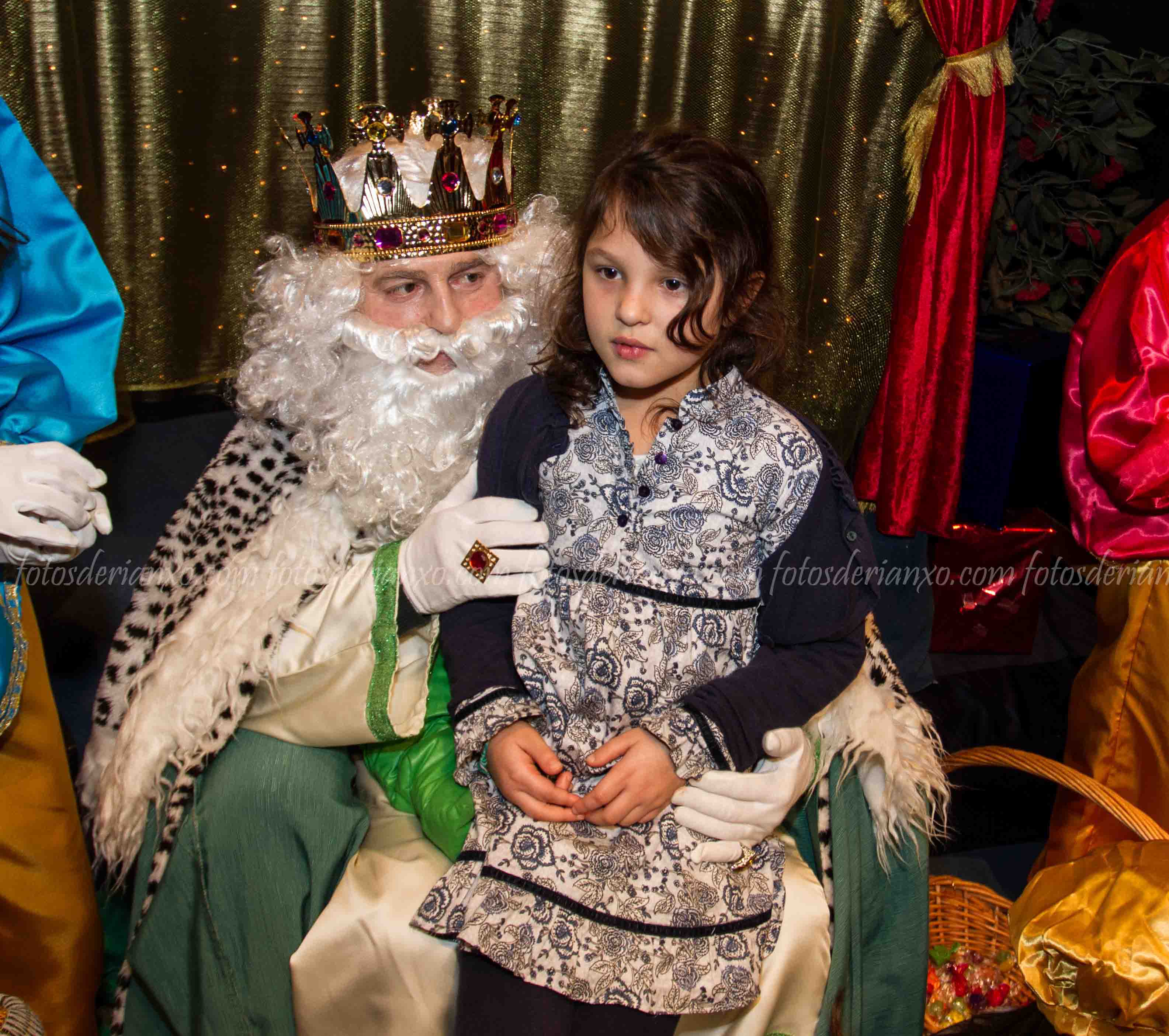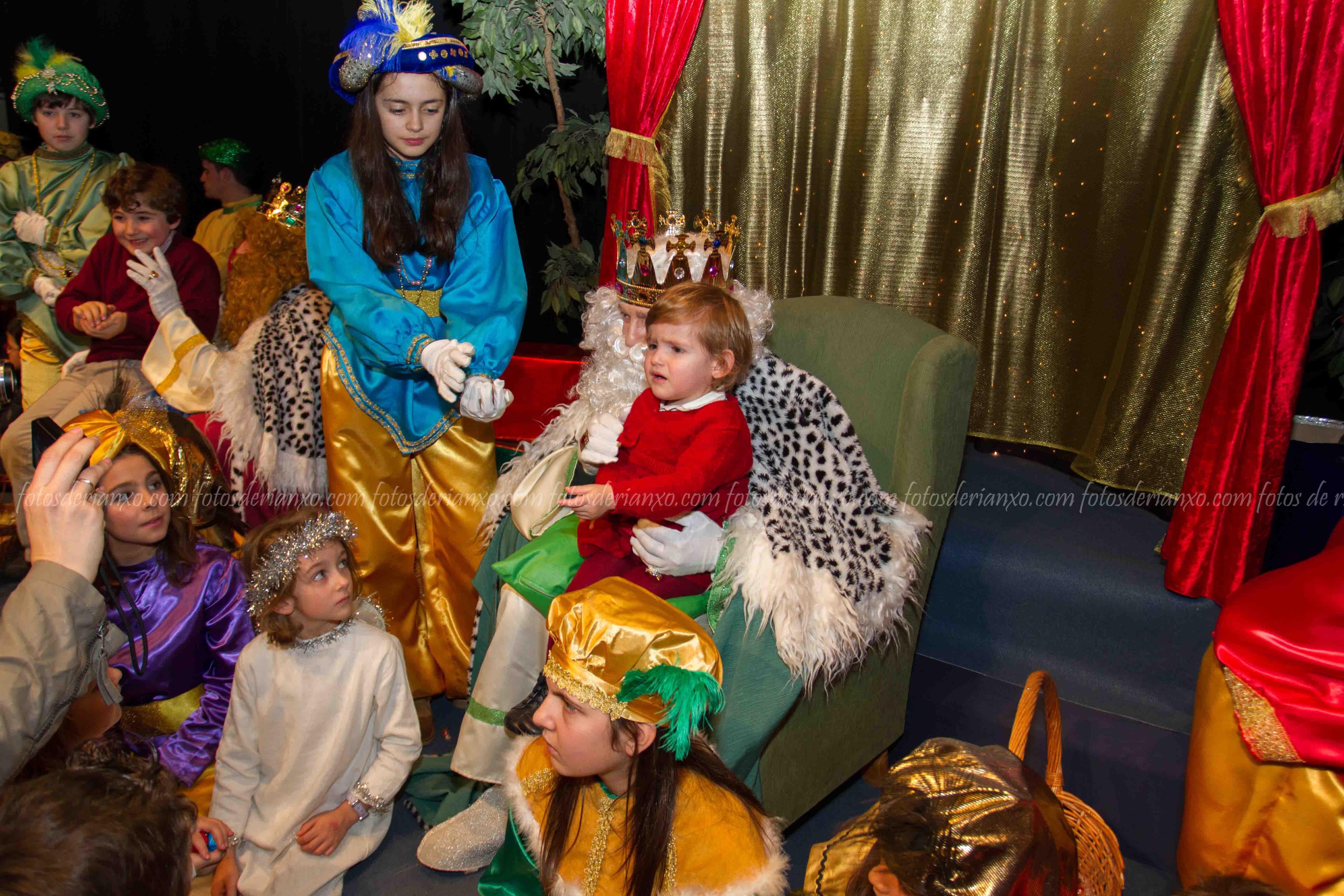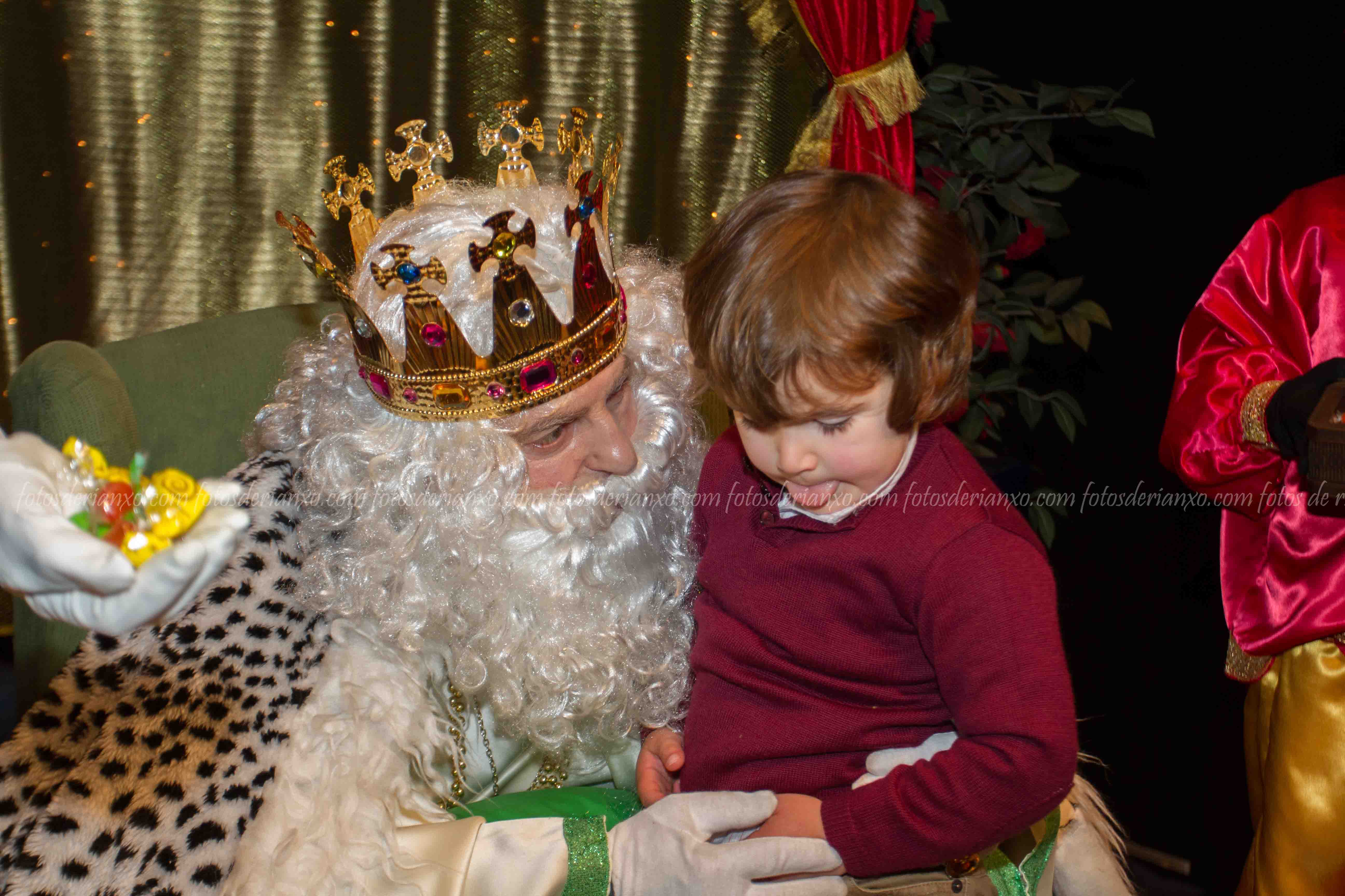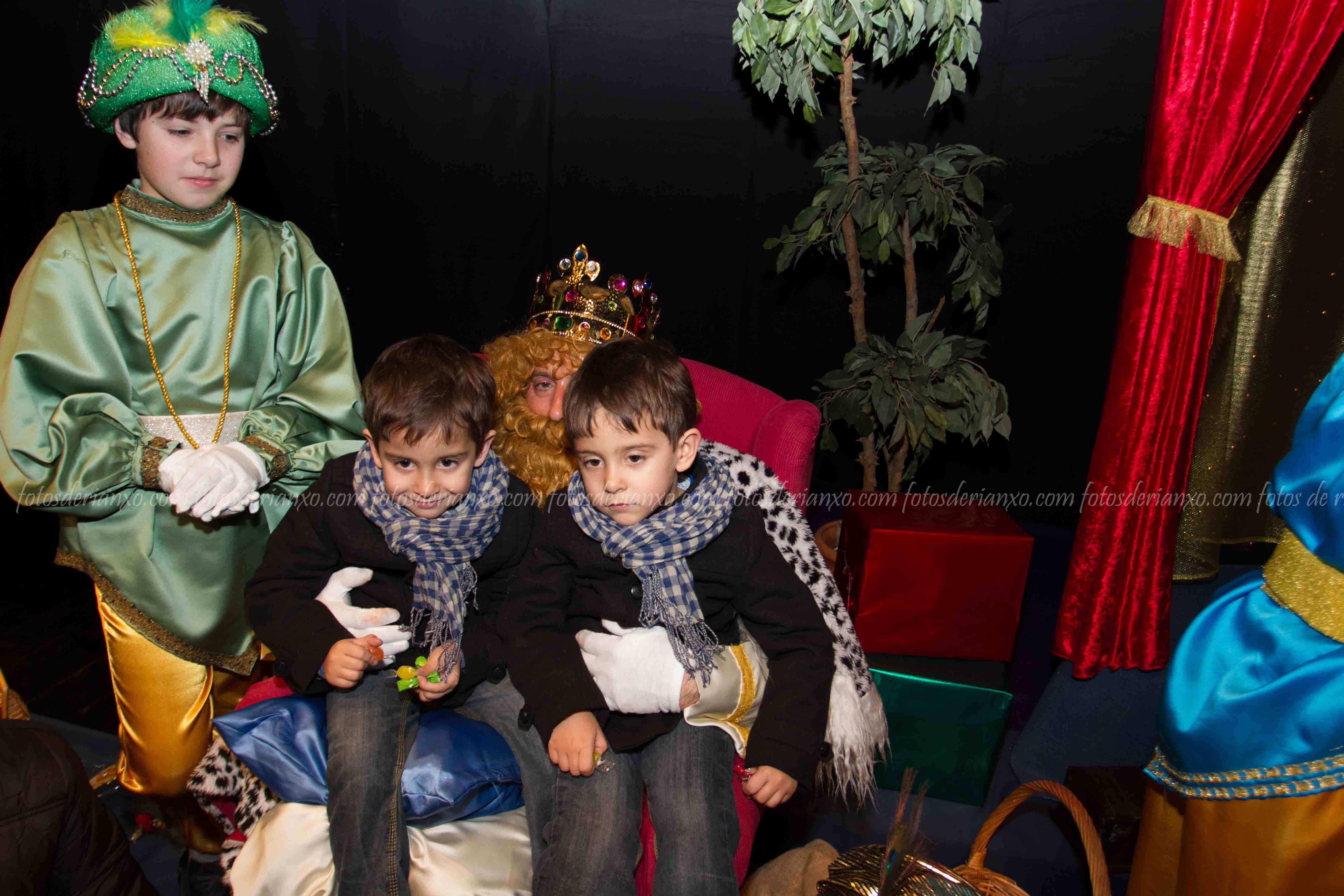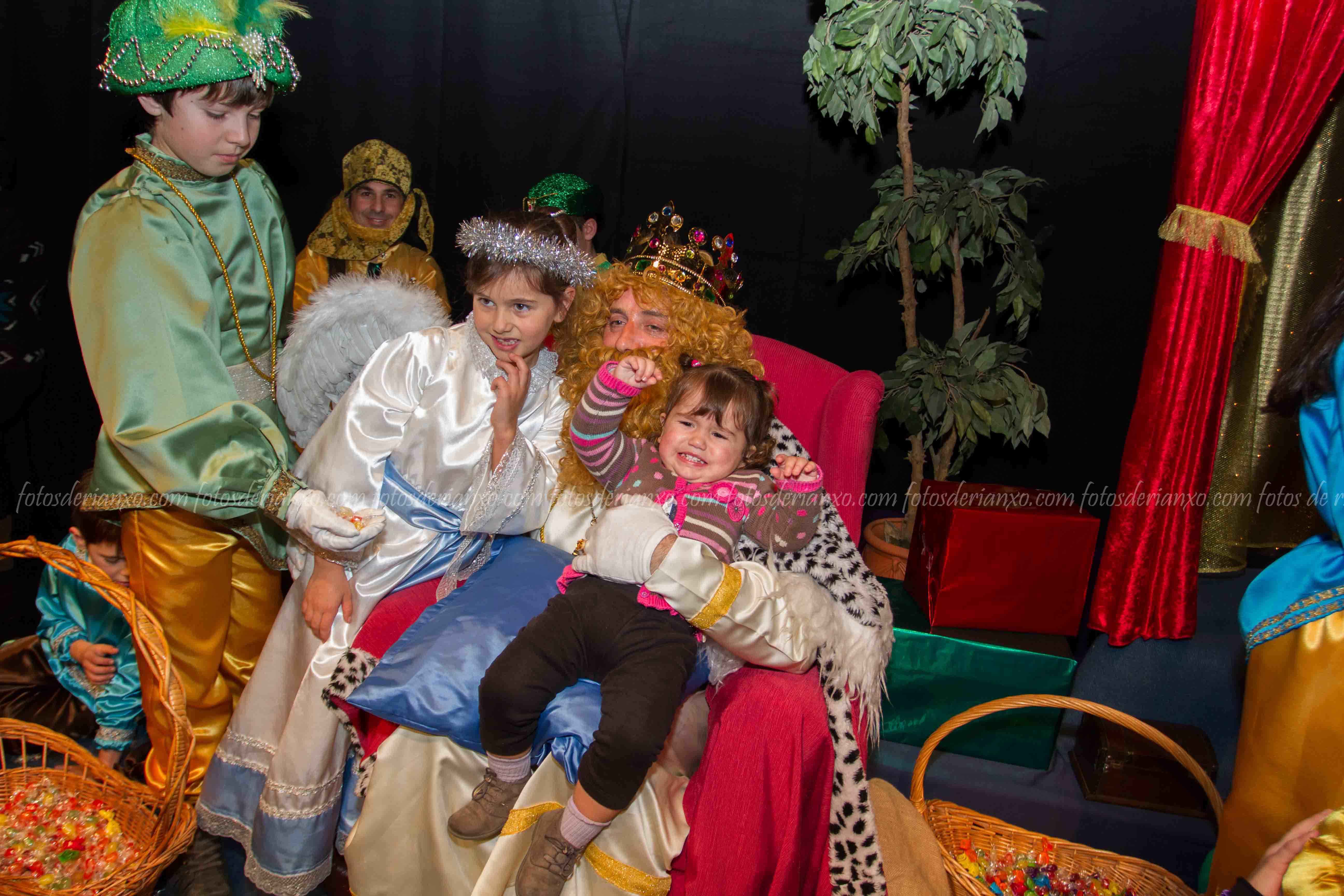 Logo da ofrenda, entraron no Auditorio e foron para o escenario, onde se acomodaron nos seus tronos e agardaron ós centos de cativ@s que pasaron por alí a pedir os seus agasallos ó seu rei favorito (ou ós tres directamente) e a coller os caramelos que lles ofrecían.