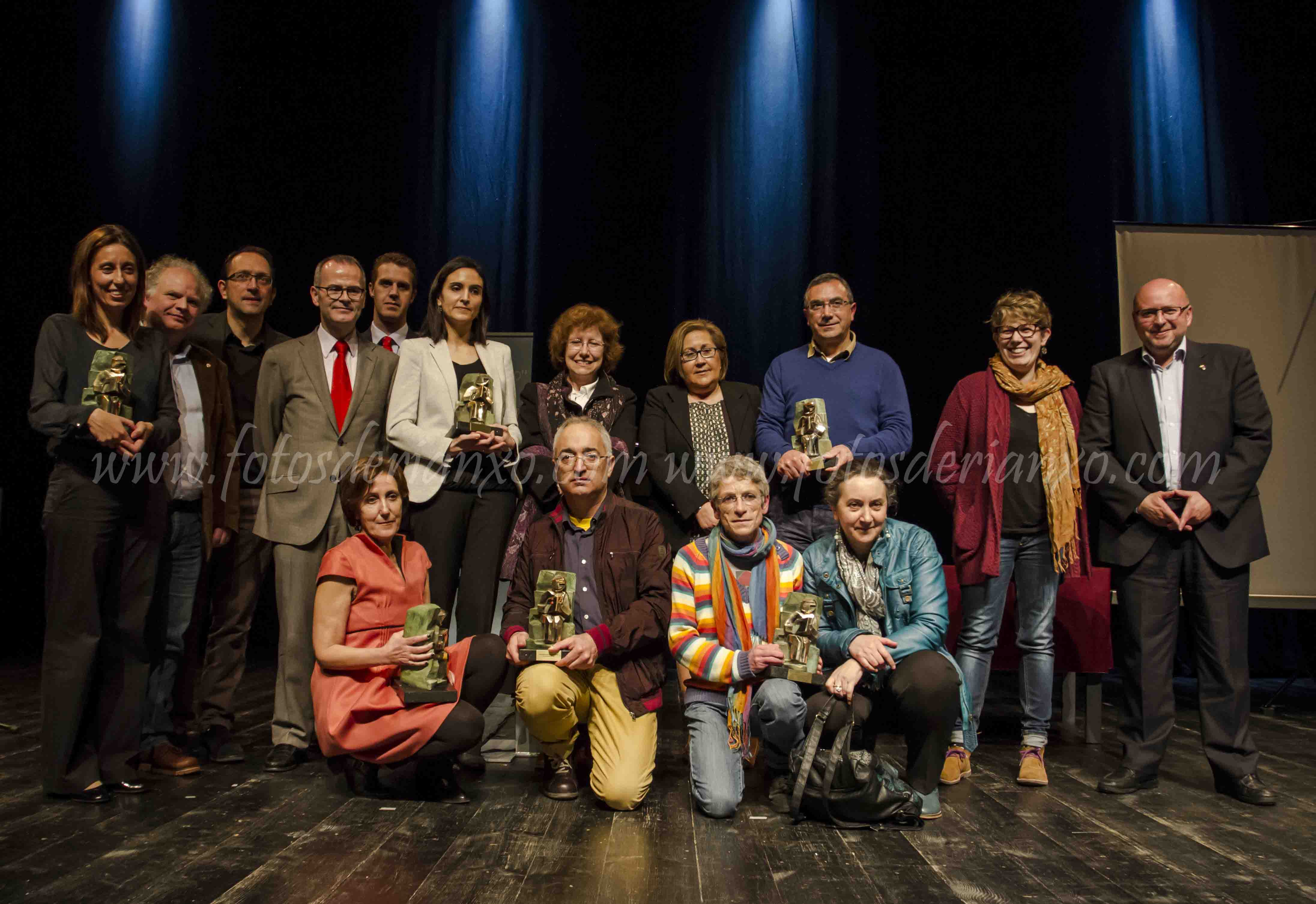 Xa rematado o acto, @s premiad@s subíronse ó escenario coas súas estatuíñas, acompañad@s polas autoridades que llas entregaron.