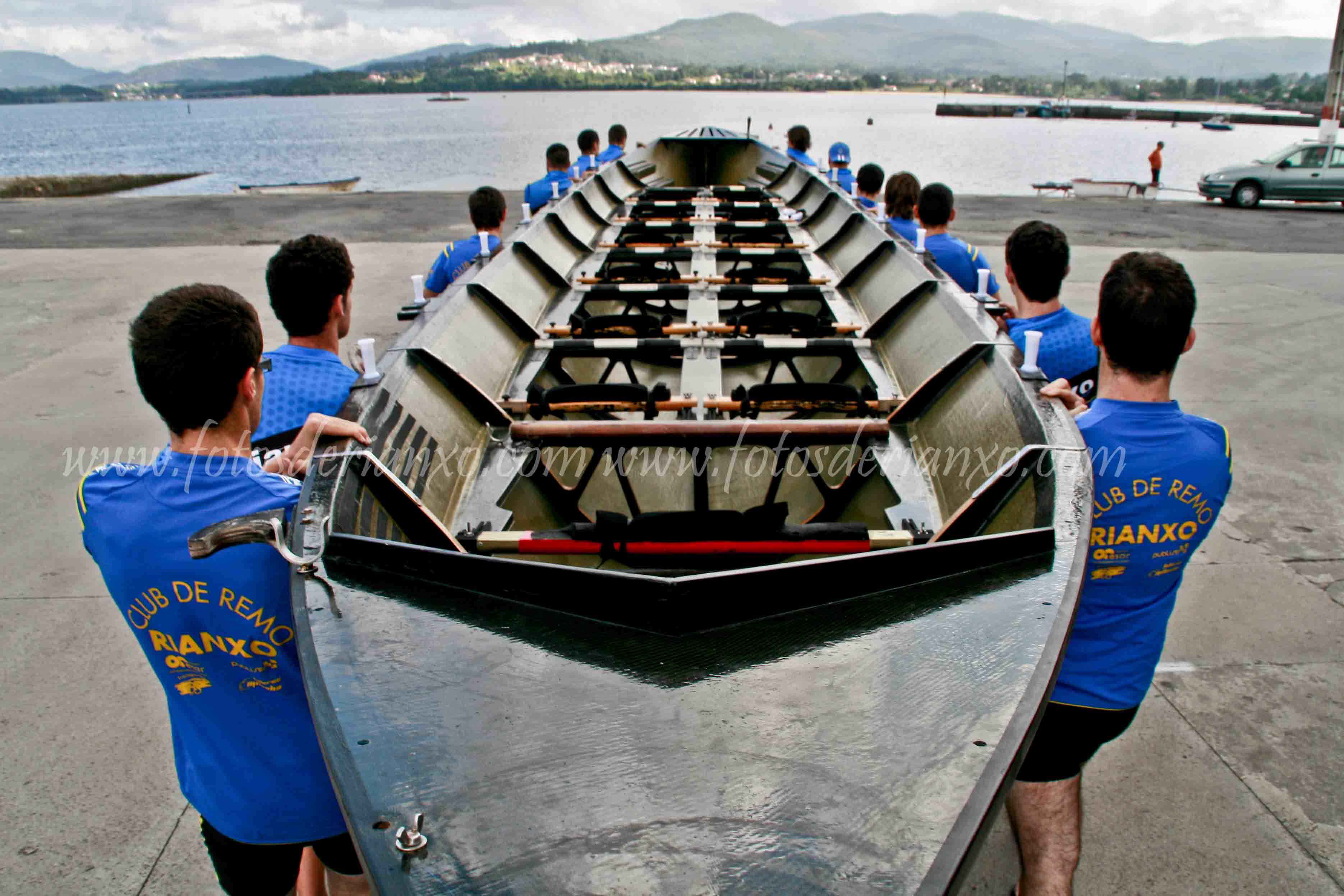 Despois de reunirse, o capitán reparte as tarefas e indica quen vai remar e quen precisa traballo de ximnasio. Así que collen a embarción e tiran para a auga: