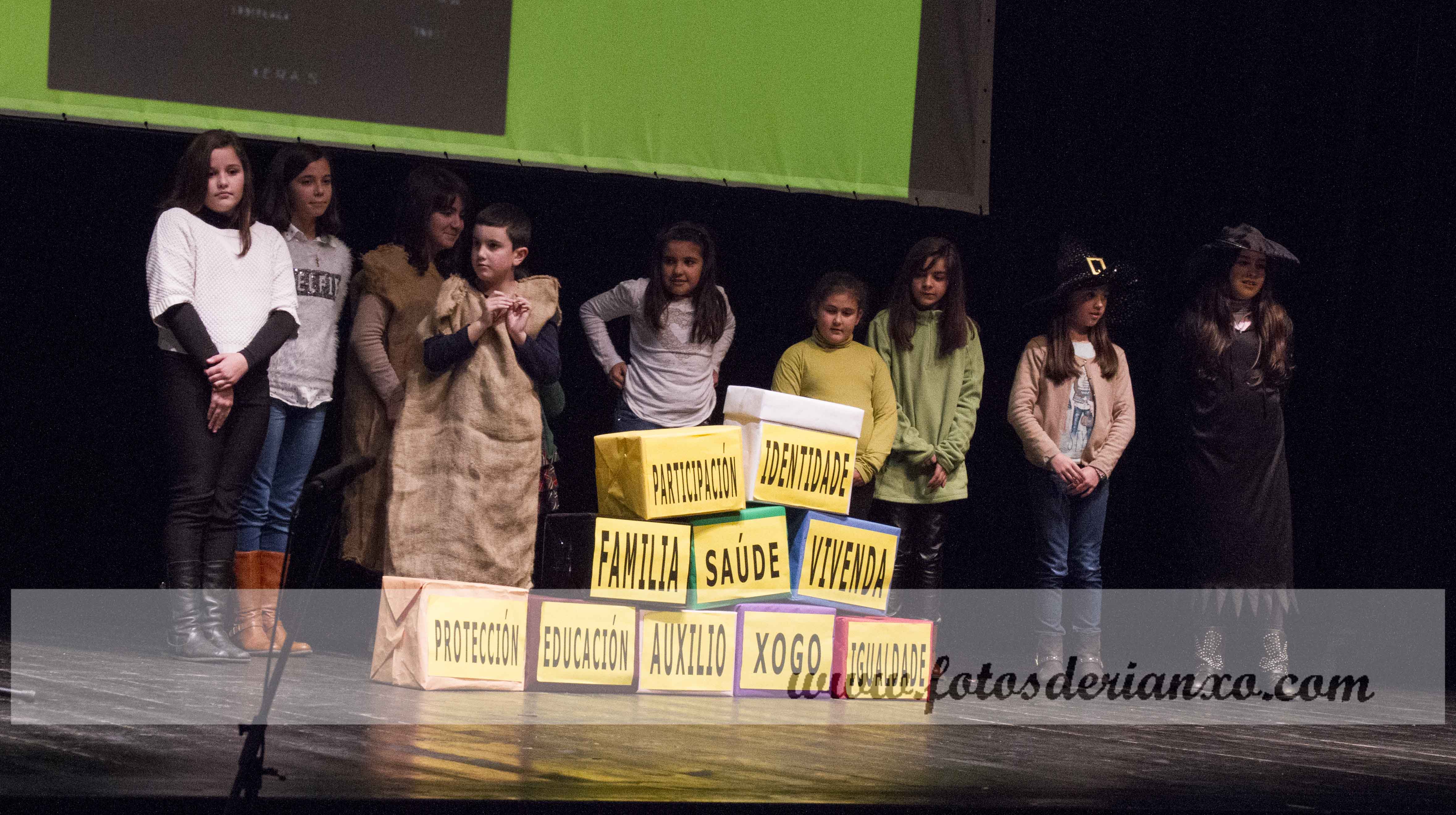 Polo escenario do auditorio rianxeiro foron pasando os case que 90 alumn@s dos centros, que comprendían entre os 3 e os 17 anos de idade.
