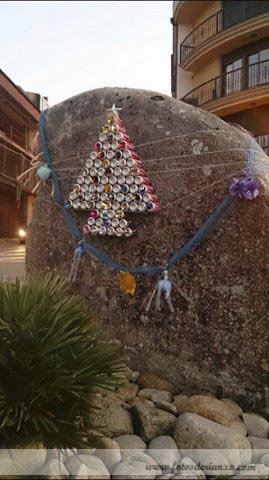 Queremos hoxe amosarvos un fermoso traballo que podemos contemplar polas rúas de Rianxo. Trátase de “Adorna Rianxo“, unha iniciativa popular coordinada por Pepa Martínez (A Fiestra artesanía) e secundada por unha chea de veciños de entre 6 e 80 anos, que consistíu en confecionar durante dous meses adornos de Nadal feitos con material de refugallo tales como lá, tapóns de botellas e botes, cd´s, anacos de teas, latas…, as cales foron dispoñendo de tal maneira que é unha marabilla podelas contemplar pola vila adiante.