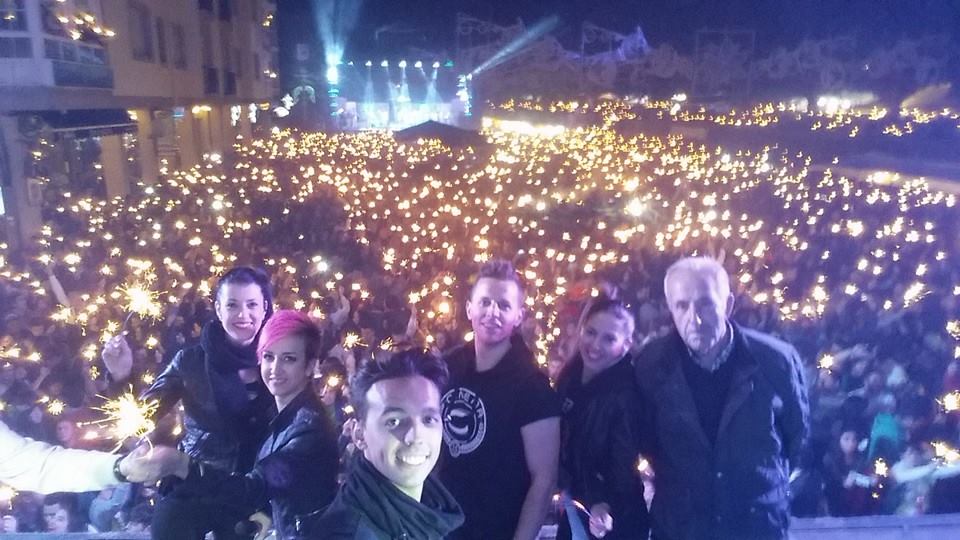 Velaquí o selfie que fixeron dende o palco da orquestra Cinema, con Moncho o Xixí:
