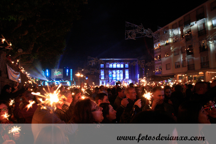 E ás 2 da madrugada, todos no Campo para cantar a Rianxeira. Iso si, este ano sen demasiados agobios. Todo o mundo coincidiu en que había moita xente, pero menos que outros anos e que se estaba moi ben na praza, sen apretóns nin empurróns.