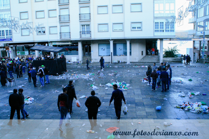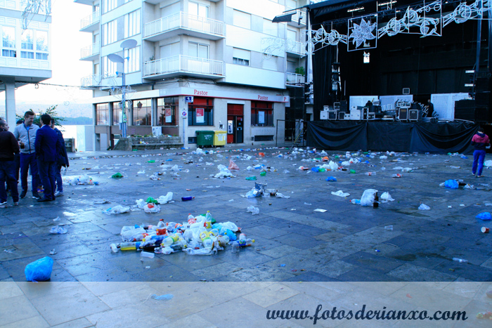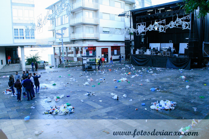 No Campo semellaba que houbera unha batalla campal, xa que moita xente segue sen recoller o lixo que xera:
