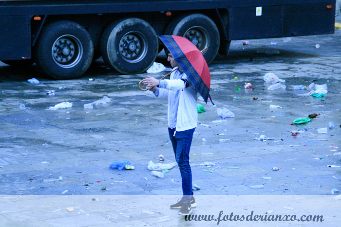 Pero todo o bo se acaba. Neste caso a música rematou ás 8.45 horas. A xente das orquestras tiña que seguir traballando, como o camioneiro da Triunfo, a quen parou un mozo: