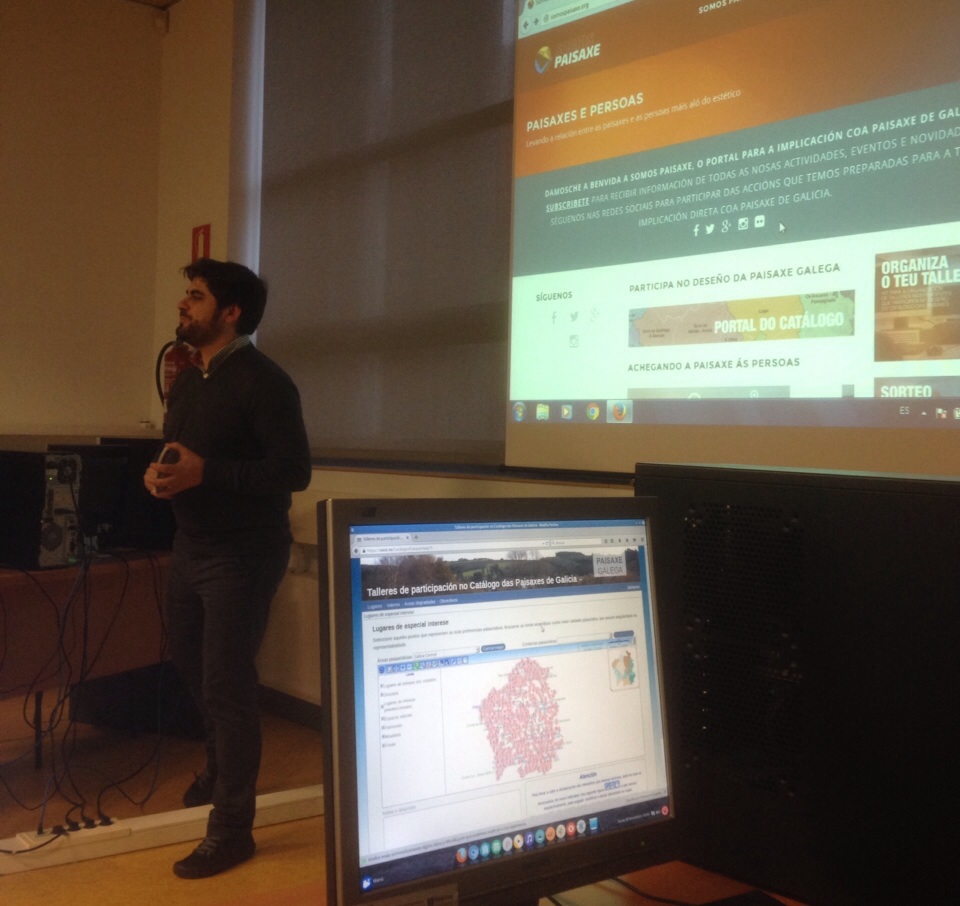 O taller foi impartido por Francisco García do Laboratorio do Territorio da USC e Inés Santé, Directora do Instituto de Estudos do Territorio da Xunta de Galicia. Os participantes ateigaron a sala destinada a tal evento no auditorio, cun total de 14 asistentes onde se recollían varios arquitectos, algún fotografo, políticos… compoñendo unha variedade de persoas preocupadas polo entorno e o coidado do medio.