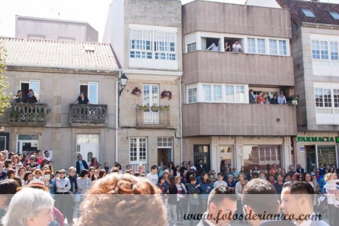Como vedes, á unha do mediodía na praza da Igrexa ou de Rafael Dieste había moita xente pendente da chegada de Eva. Facía uns 20 graos, así que todo o mundo se poñía do lado da sombra.