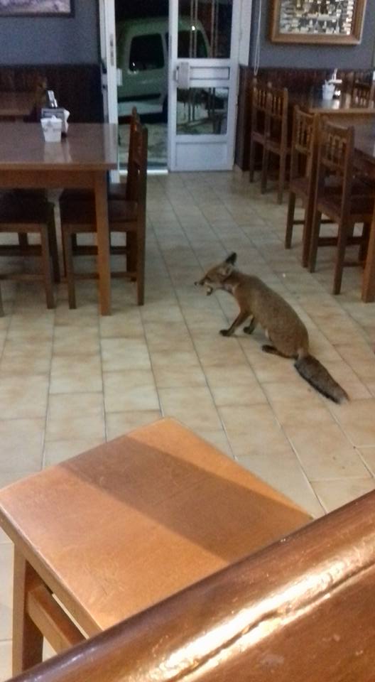 Un raposo, cliente habitual dun restaurante de Rianxo
