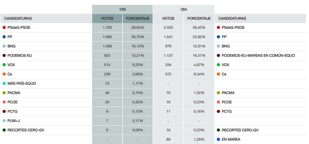Resultados das eleccións xerais de novembro de 2019 en Rianxo