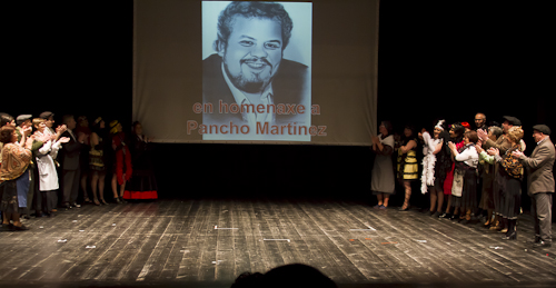Hoxe imaxinamos ao amigo Pancho polo escenario do ceo cunha claqueta que di: ¡Graciñas, Rianxo!. E nós respondémoslle: