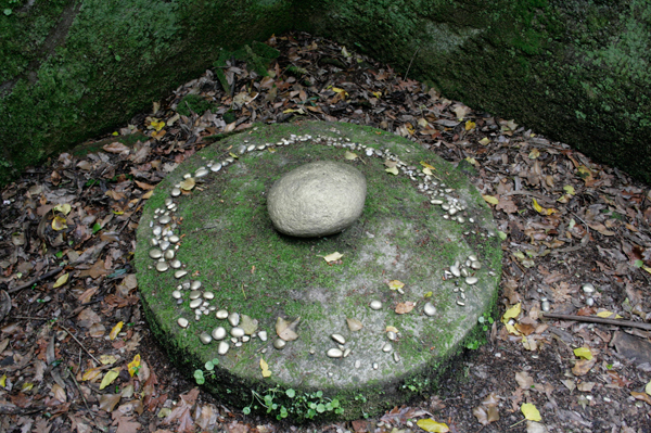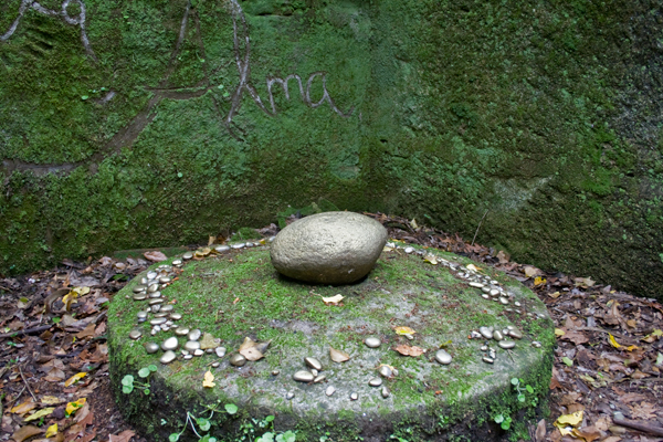 Non sei se o vedes como parte dun ritual ou ben como un proxecto artístico. A verdade é que a min me descolocou bastante. Todas as pedras, tanto a central como as do lado estaban perfectamente colocadas e pintadas de dourado. Está claro que pola zona non pasa moita xente, sobre todo se non é época de pesca, e alí puideron facer isto sen que ninguén vira nada.