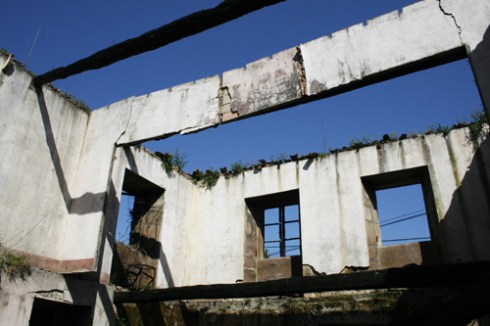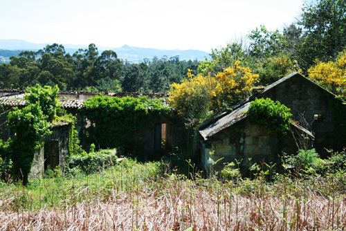 Esta entrada vai para o meu amigo Mario, que foi o que me levou a descubrir a antiga casa rectoral de Leiro. Como podedes ver, está totalmente abandonada e feita un cristo (nunca mellor dito). Dentro estaba o antigo cinema da parroquia, como o demostra o carteliño de “Prohibido Fumar”. E nos arredores pode atoparse unha antiga cociña, os cortellos e un enorme hórreo (supoño que se enchía no seu día grazas á inestimable axuda dos veciños) que está a ser devorado polas hedras.